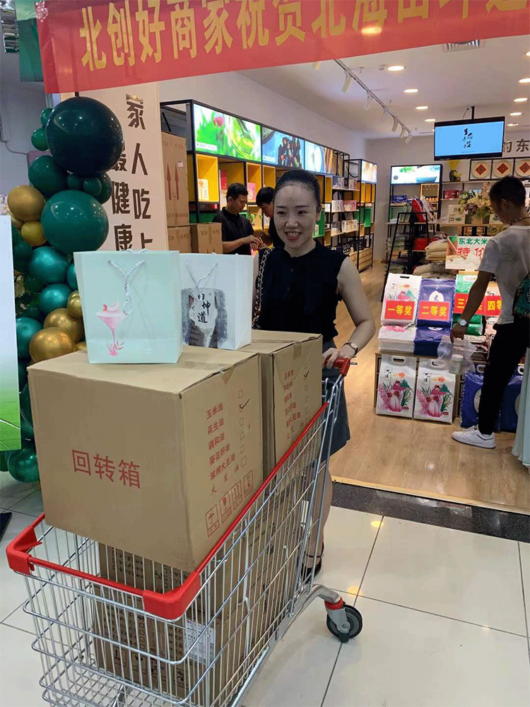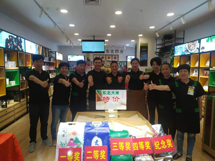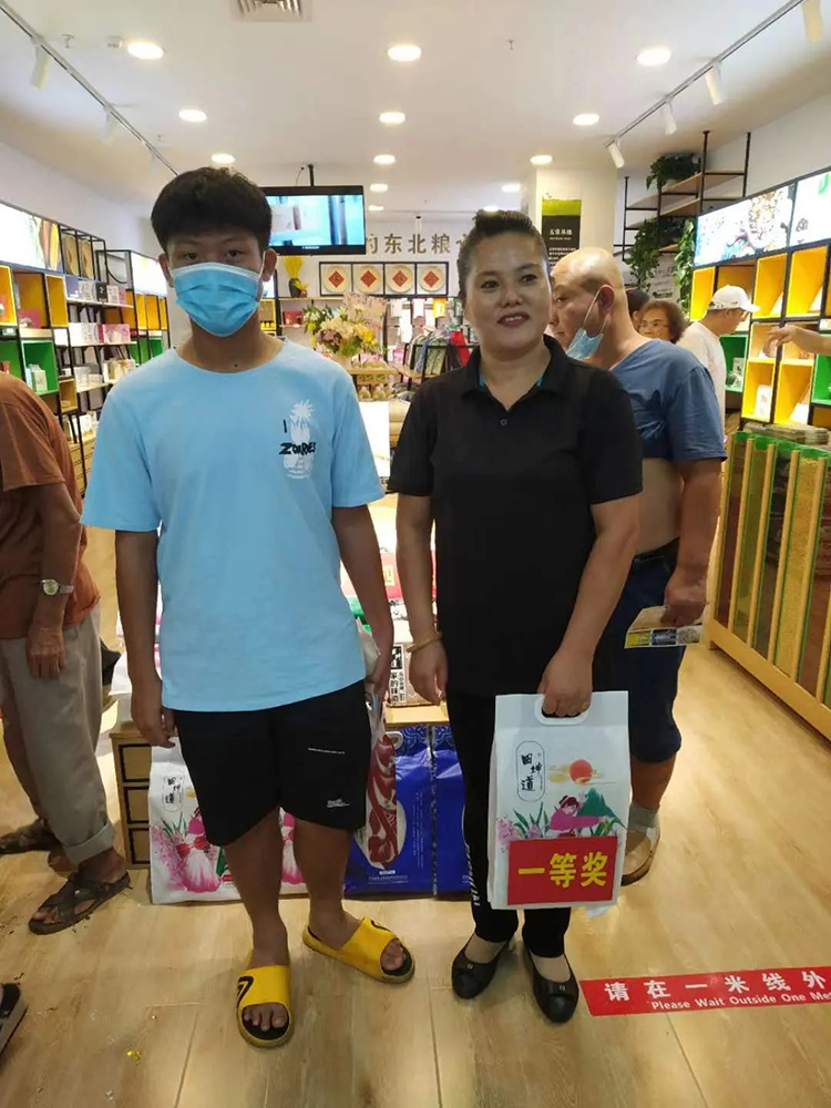 大家进店参观,选购产品,还可以抽大奖。从开业起就人流量不断,我们不仅向客户传达东北大米、东北食物的优点,还向大家传达健康饮食的理念。