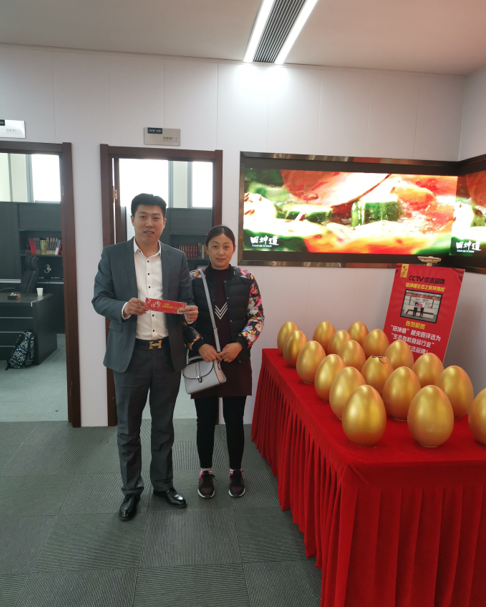 为庆祝田坤道被央视评选为“生态有机行业优选品牌”,公司举办砸金蛋活动,恭喜许女士砸中三等奖,喜得品牌电饭煲一台。