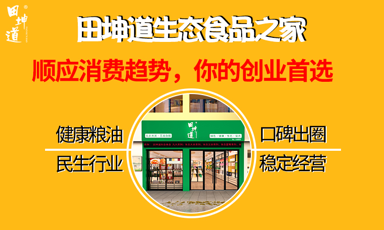 可能在你的心中已经有了很多还在犹豫的答案,在这里我们还要为大家在推荐一个正当时的创业机遇——田坤道生态粮油店。